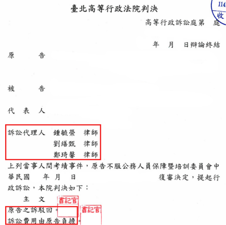 公務員考績案件,本所律師團隊成功取得高等行政法院勝訴