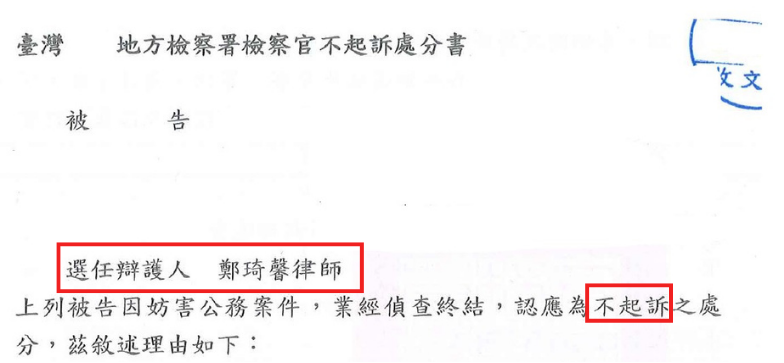 3.檢察官最後認定被告當下並無妨害公務之犯意,因此以罪嫌不足給予不起訴處分。