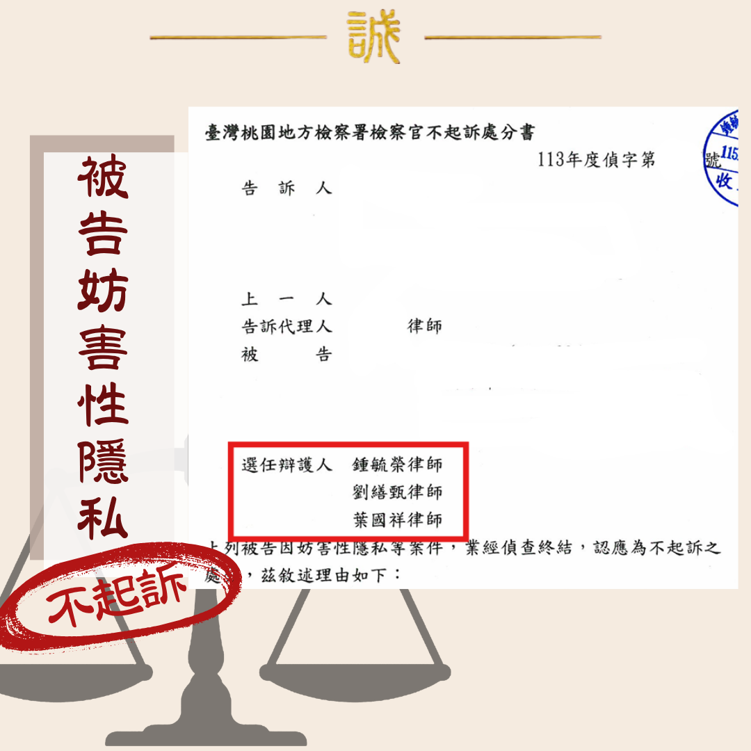 遭控洩個資與恐嚇,本所律師團隊協助成功獲不起訴處分