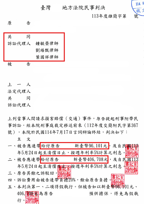 律師團隊精確鎖定肇事者駕駛的是營業用貨車,第一時間即鎖定其背後的交通公司,針對韌帶斷裂導致的後遺症,我們不甘於僅領取醫藥費,成功爭取醫學中心進行勞動力減損鑑定,將看不見的後遺症具現化為賠償數據。最終法院判決被告與公司應連帶賠償近50萬元,保障當事人復健與生活權益。