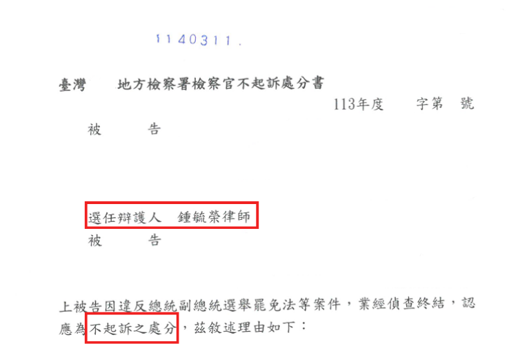 誤闖選舉風暴,還好只是路過!本所取得選罷法不起訴處分