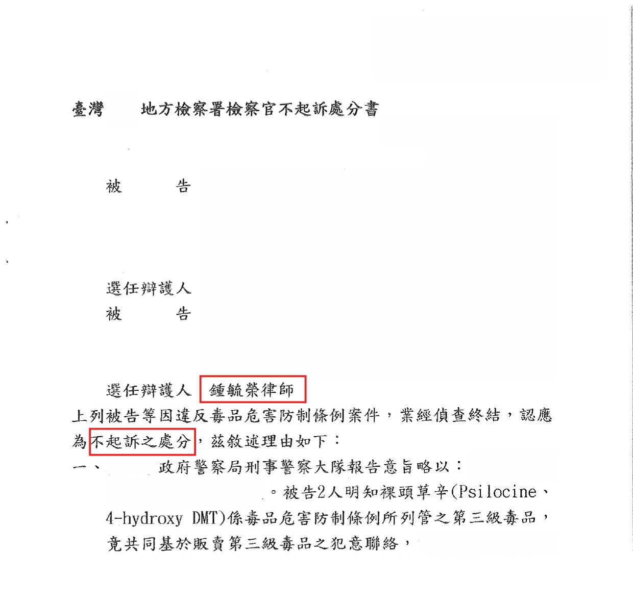 4.地檢署最終為不起訴處分