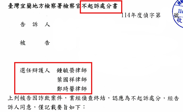 在偵查過程中,律師團隊向檢察官具體論證,當事人是在尋求求職或貸款過程中,遭詐騙集團以話術誤導才交付帳戶資訊,主觀上完全缺乏參與詐欺或洗錢之不法犯意。律師團隊強調,不能僅因帳戶有款項進出,就推論帳戶持有人具有犯罪默契。最終,檢察官採信律師團隊之辯護意見,認定本案查無積極證據足資認定當事人有幫助詐欺之嫌,給予不起訴處分,成功捍衛當事人之清白與名譽。