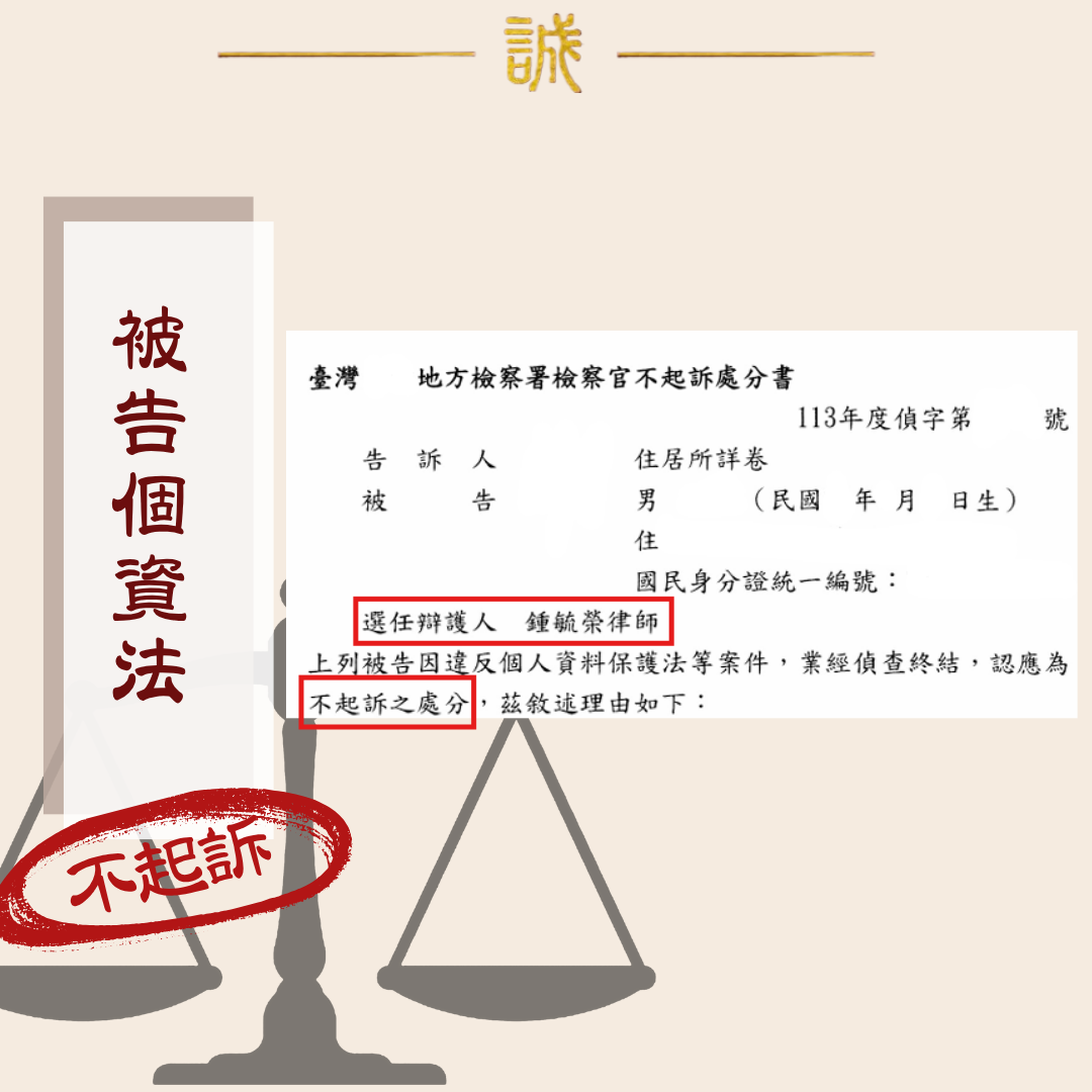 遭控洩個資與恐嚇,本所律師團隊協助成功獲不起訴處分